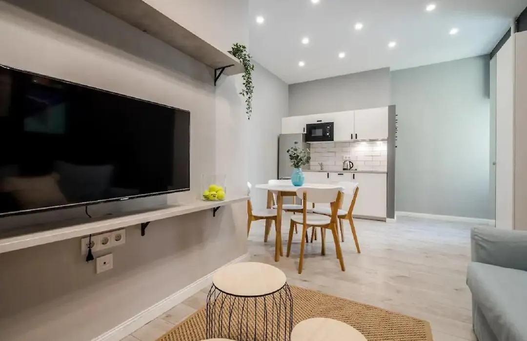 Diese Unterkünfte bietet seinen Gästen einen Wohnbereich, eine Sitzecke und eine Küche sowie moderne Annehmlichkeiten wie eine Klimaanlage. Für zusätzlichen Komfort stehen im Trendy Design Apartment- 1 Br- Ac eine begehbare Dusche und eine getrennte Toilette zur Verfügung. Das Badezimmer ist zudem mit einem Haartrockner und Badelaken ausgestattet.